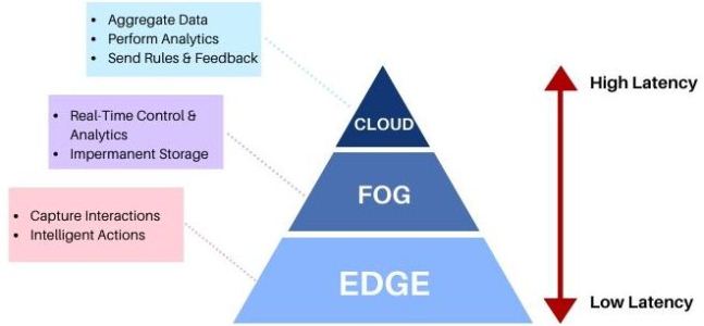 - Fog computing moves the edge computing activities to processors that are connected to the local area network (LAN) or into the LAN hardware itself so they may be physically more distant from the sensors and actuators.