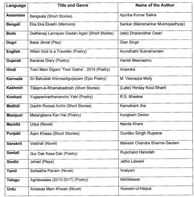 - Awards in Malayalam, Nepali, Odia and Rajasthani languages will be announced at a later date.