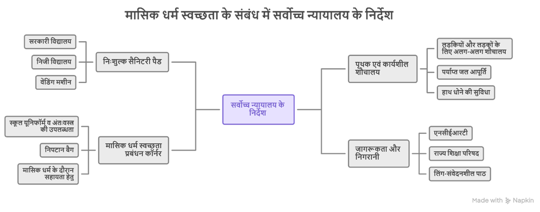 - यह निर्णय एक जनहित याचिका (PIL) के संदर्भ में आया, जिसमें कक्षा 6 से 12 तक की छात्राओं के लिए देशव्यापी स्तर पर मासिक धर्म स्वच्छता नीतियों के प्रभावी क्रियान्वयन तथा विद्यालयों में लिंग-आधारित पृथक शौचालय जैसी बुनियादी सुविधाओं की व्यवस्था सुनिश्चित करने की मांग की गई थी।