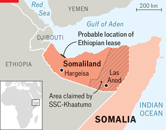 - इथियोपिया ने जनवरी 2024 में नौसैनिक अड्डे की पहुंच के बदले मान्यता की संभावनाएं तलाशने हेतु एक समझौता ज्ञापन (MoU) पर हस्ताक्षर किए।