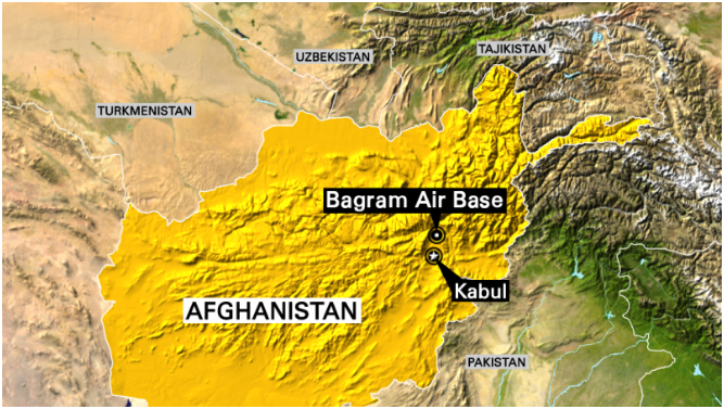 - काबुल से मात्र 60 किलोमीटर उत्तर में स्थित यह एयर बेस, इरान, पाकिस्तान, मध्य एशिया और चीन के झिंजियांग प्रांत के मार्गों के चौराहे पर स्थित है।