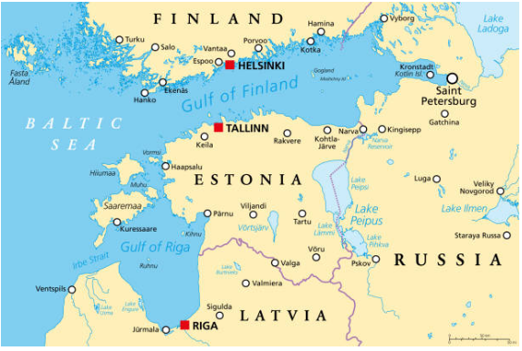 - उत्तर: फ़िनलैंड की खाड़ी (जिसके पार फ़िनलैंड स्थित है)