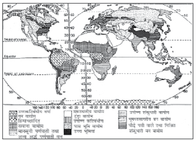 Question : प्रमुख भू-बायोमों और उनके अक्षांशीय वितरण का एक संक्षिप्त विवरण प्रस्तुत कीजिए।