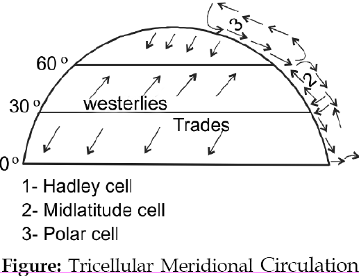 Question : Discuss the mechanism and significance of tri-cellular meridional circulation of atmosphere.