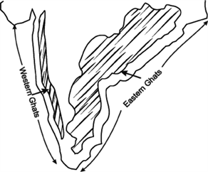 Answer : Western Ghats and Eastern Ghats are named according to the cardinals locations east and west. The Ghats are bounded by Deccan/Peninsular plateaufrom the landward side and by coastal plains from the seaward ride.
