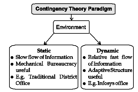 Static environment is that one where flow of information is very slow while dynamic environment is where flow of information is very fast. Contingency theory suggest that organizational structure should be developed according to the nature of the environment. Mechanical bureaucracy is suitable for static environment while flexible organization is needed for ....